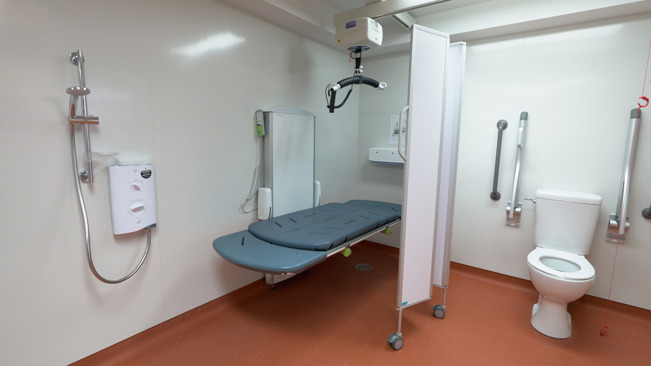 The Changing Places toilet includes a toilet, sink, hoist, screen and shower.