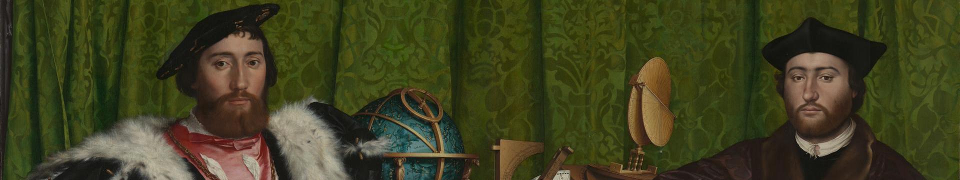 Portraits grew in scale, ambition and complexity during the first half of the 16th century. The portraits in this room show how a common visual language emerged across Europe, through the movement of paintings and painters.